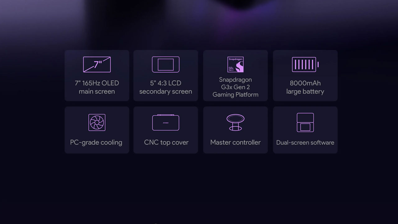 La batteria da 8.000 mAh con ricarica rapida PD punta a garantire sessioni prolungate, soprattutto sfruttando il pannello secondario a 4:3 per titoli meno esigenti. Il sistema di raffreddamento prevede ventola “PC‑grade” e piastra in rame, soluzione che dovrebbe mantenere prestazioni stabili sotto carico, riducendo il thermal throttling. Resta l’incognita della rumorosità in modalità turbo e dell’autonomia reale con refresh elevati.