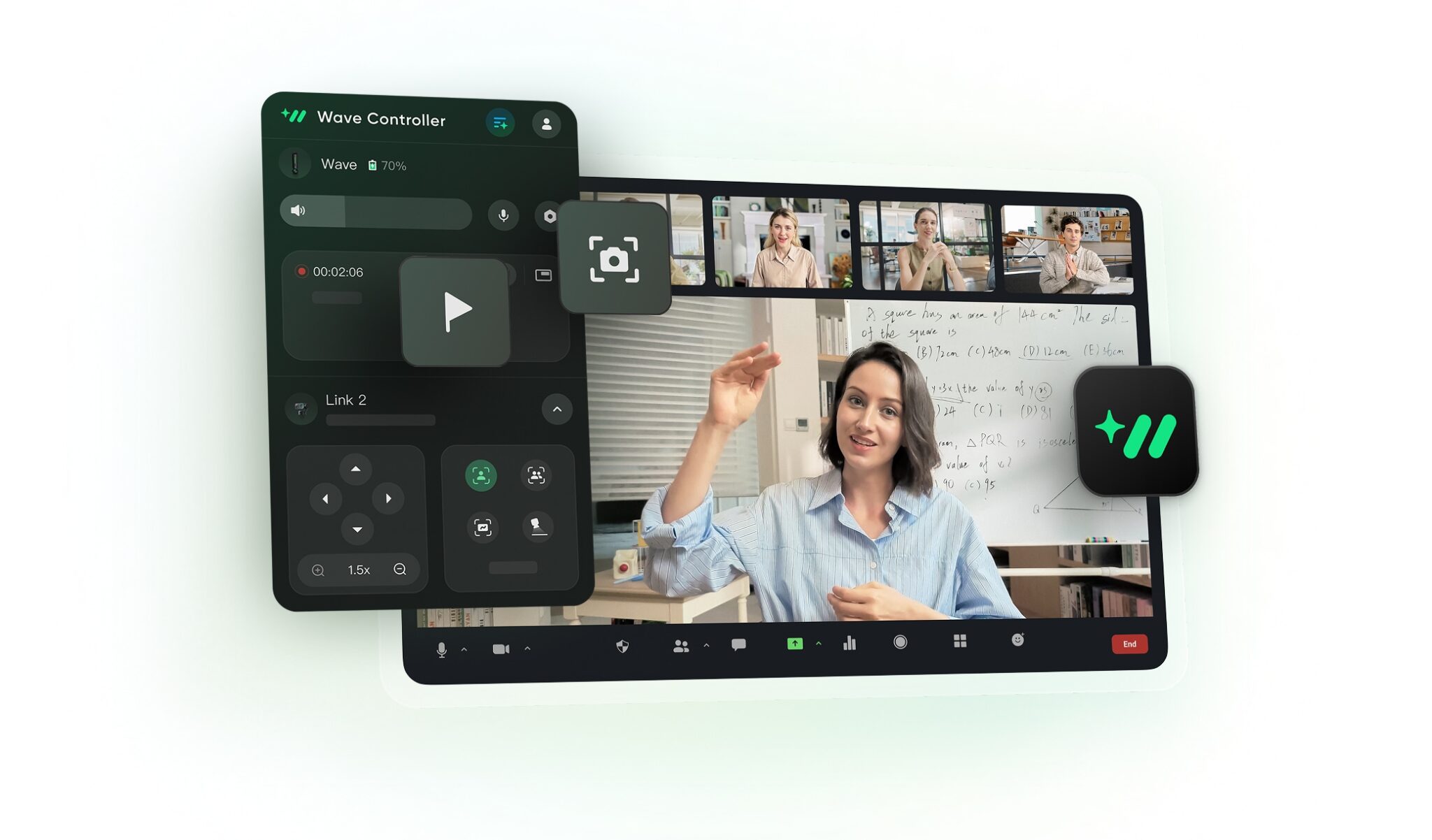 Wave è progettato per collaborare con altri prodotti Insta360 già orientati alla videoconferenza, come Connect, la serie Link e Link 2. Posizionando Link 2 sopra il corpo sospeso, si ottiene una soluzione audio‑video integrata: attraverso la localizzazione della sorgente sonora, la camera adegua il fuoco sul parlante attivo, mantenendo allineati inquadratura e microfonazione. Più unità Wave collegate possono coprire sale riunioni di dimensioni medie e grandi.