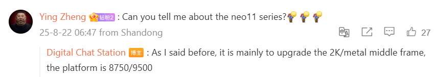 – Neo 11: Snapdragon 8 Elite (SM8750), il top di gamma della scorsa generazione Qualcomm.
