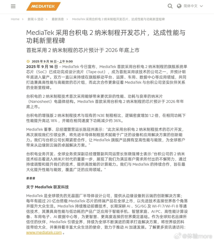 MediaTek ha confermato su Weibo l’evento di lancio del suo nuovo SoC di punta: appuntamento il 22 settembre alle 14:00 (ora locale, Cina). Il Dimensity 9500 è destinato ai top di gamma di Vivo e Oppo, con una successiva estensione ad altri brand. L’annuncio arriva mentre l’azienda anticipa anche i progressi sul suo futuro chip a 2 nm, atteso in produzione di massa nella seconda metà del 2026.