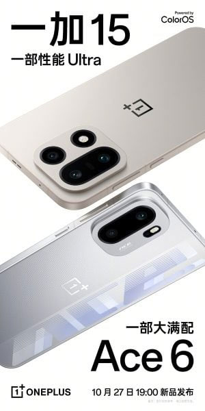 OnePlus ha confermato ufficialmente che presenterà OnePlus 15 e OnePlus Ace 6 in Cina il 27 ottobre. Il top di gamma era già stato oggetto di numerosi teaser, mentre per Ace 6 l’azienda ha svelato oggi il design, lasciando trapelare una strategia in due direzioni: fotografia e completezza per il flagship, autonomia e prestazioni aggressive per il modello della linea Ace.
