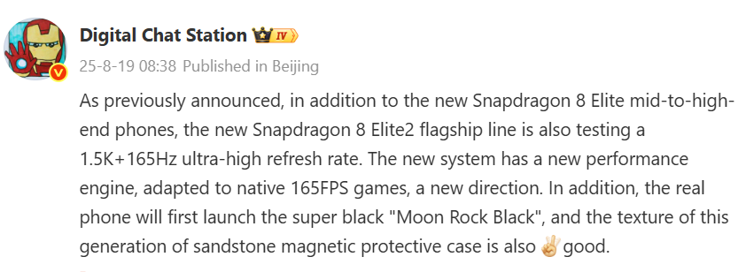 Un nuovo leak del noto tipster cinese Digital Chat Station su Weibo anticipa diverse novità sul prossimo top di gamma OnePlus atteso in Cina a ottobre. Il post fa riferimento a futuri flagship con chipset Snapdragon 8 Elite/8 Elite 2 (SM8850) di Qualcomm e, nello specifico, si concentra su schermo, prestazioni grafiche e una nuova finitura cromatica del presunto OnePlus 15. Trattandosi di informazioni non ufficiali, i dettagli vanno considerati come rumor fino a conferma del brand.