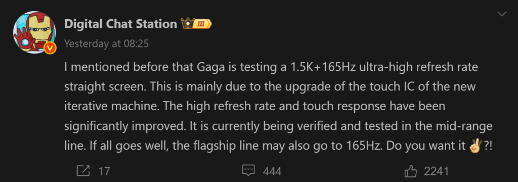 Non solo: il brand cinese starebbe sviluppando anche un tablet con schermo da 165Hz, sebbene non sia chiaro quale prodotto sarà il primo a debuttare con questa tecnologia.