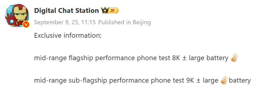 – In test due modelli performance-driven, con batterie rispettivamente da 8.000 mAh+ e 9.000 mAh+.