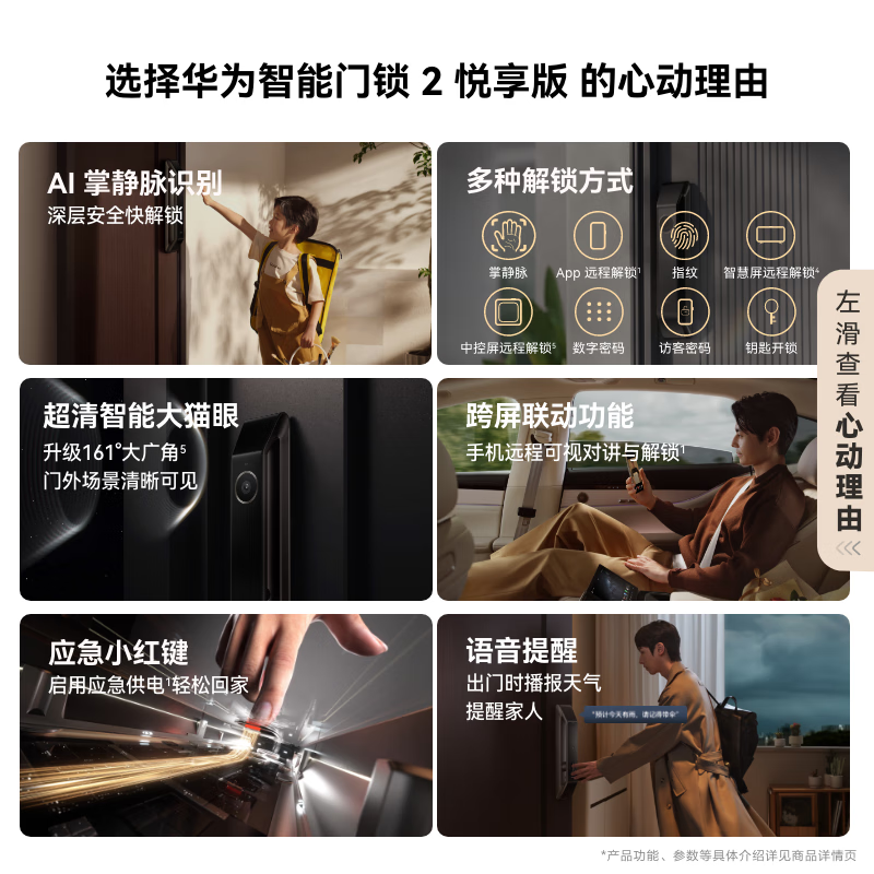 Il modulo ottico integra uno spioncino ultra‑grandangolare da 161°, pensato per sorvegliare l’area esterna in tempo reale. Il feed live è accessibile su smartphone Huawei, smart screen e sistemi infotainment in auto, con: