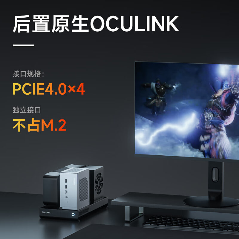 Topfeel dichiara la presenza di 16 linee PCIe complessive per lo storage e l’espansione: ciò consente configurazioni molto veloci, ma è bene considerare la possibile condivisione delle linee tra slot multipli e l’interfaccia esterna OCuLink in caso di utilizzo simultaneo all‑limit.