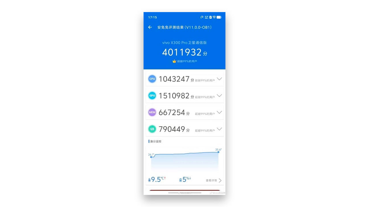 Il presunto Vivo X300 Pro ha totalizzato 4.011.932 punti su AnTuTu v11, distribuiti tra CPU: 1.043.247 e GPU: 1.510.982. Si tratta di valori da top di gamma, in particolare sul fronte grafico. Questi numeri non sostituiscono i test reali, ma indicano un solido salto generazionale lato compute e rendering, utile per gaming ad alto frame rate e carichi AI on‑device.